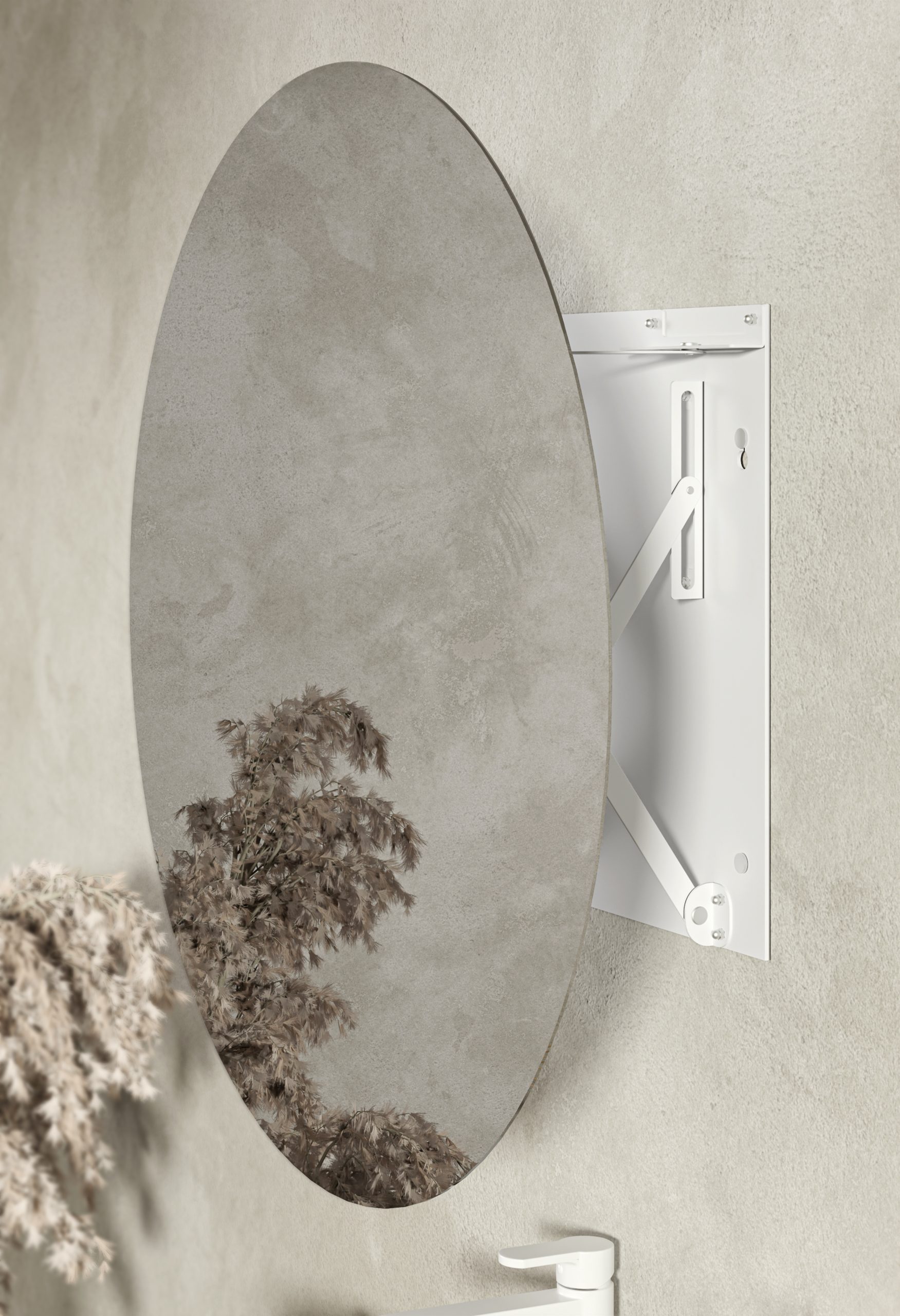 Duże okrągłe lustro z mechanizmem wysuwnym. Dzięki najnowszej wersji opatentowanych prowadnic AXIO-LINK® 2.0 ułatwia wszystko, co zwykle robisz przed lustrem. Wysuw lustra do 30 cm. Opcja wyboru koloru mechanizmu i części przyściennej. Magia i wygoda w najlepszej postaci.