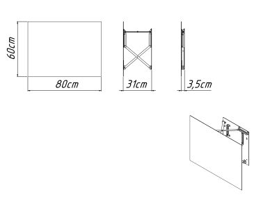 Wymiary: 80 szer. x 60 wys. x 4 gł. cm