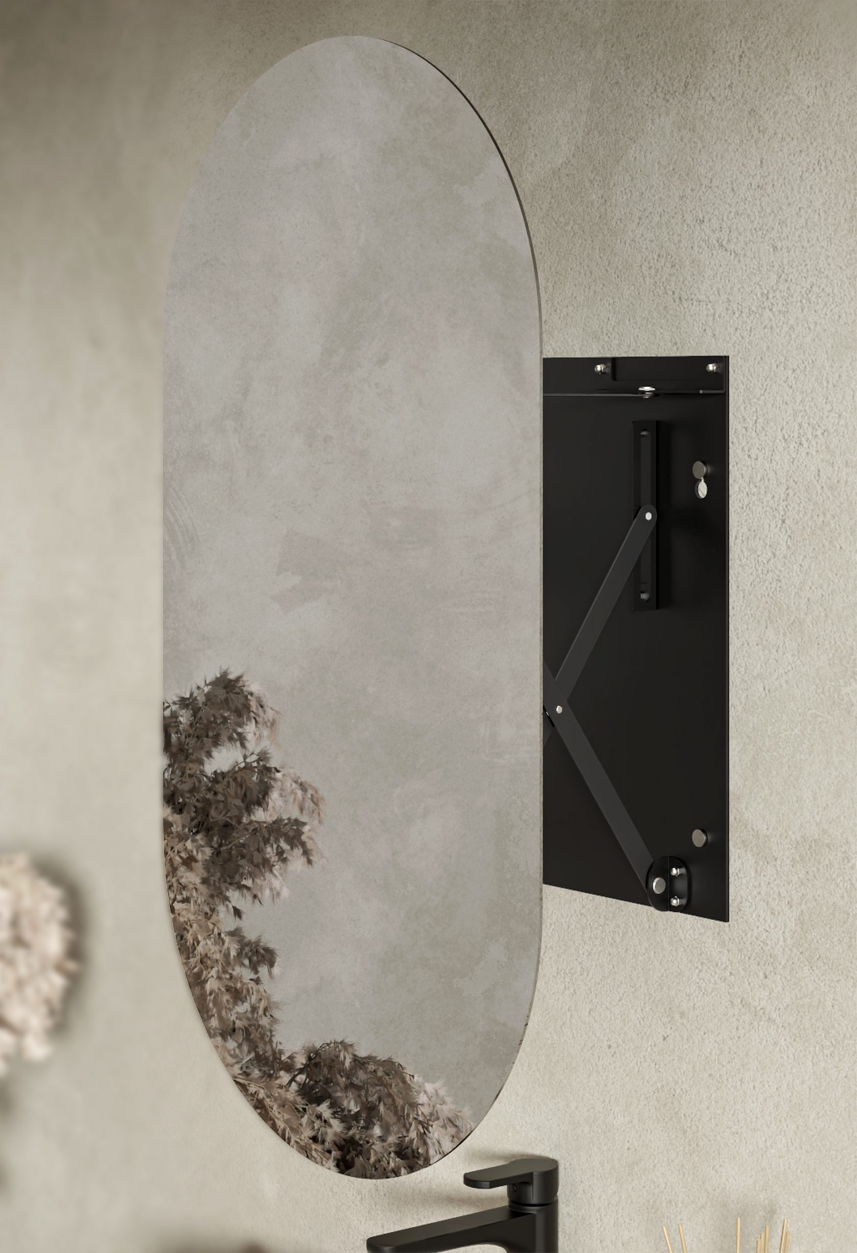 Owalne lustro wysuwne do łazienki czy kącika kosmetycznego. Nowoczesne materiały odporne na wilgoć. Najnowsza wersja unikalnego mechanizmu wysuwnego AXIO-LINK® 2.0. Łatwy montaż, pełne bezpieczeństwo.